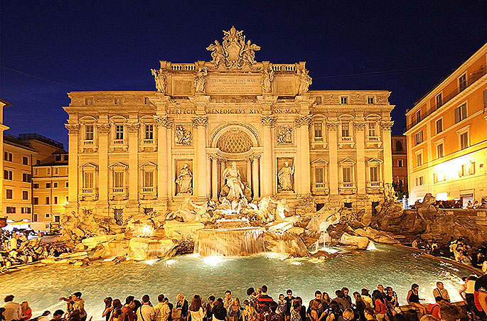 Nisja nga Tirana me avion për në Romë. Nisja më 06:00. Mbrritja në Romë më 07:40. Transfertë nga Aeroporti në Romë. Vizitë panoramike e qytetit dhe monumenteve kryesore të Romës si: Piazza Del Popolo, Via Del Corso, Fontana Di Trevi, Vazhdon vizita në Romë: Pantheon, Piazza Venezia, Piazza Di Spanja, Piazza Navona dhe Koloseum. Fjetje në hotel.